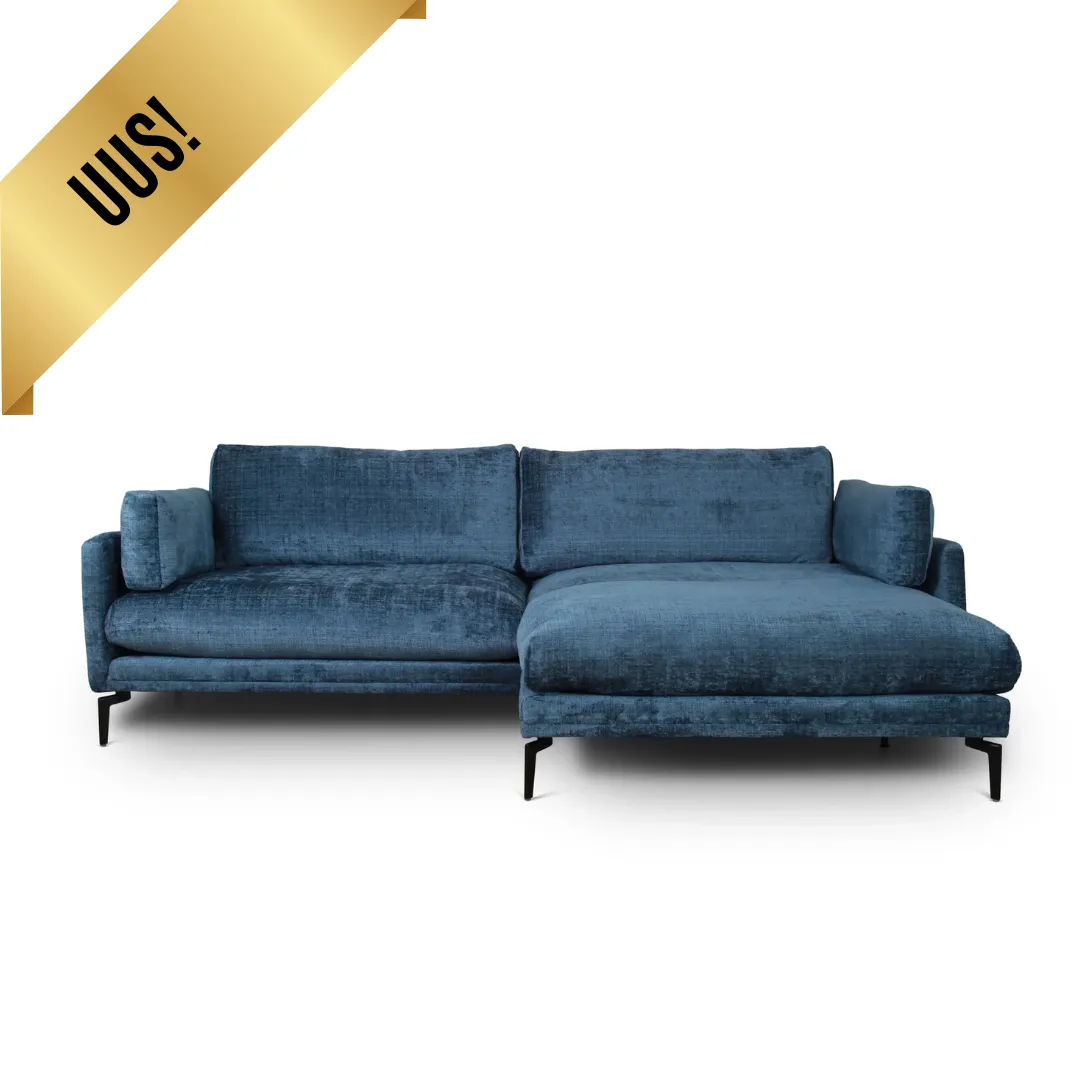 Eden nurgadiivan ühendab kaasaegse disaini ja luksusliku mugavuse. Lummav sinine sametise ilmega kangas lisab elutuppa iseloomu ja väärikust, samas kui õhuline vorm ning kõrged mustad metalljalad annavad diivanile kerge ja modernse ilme.